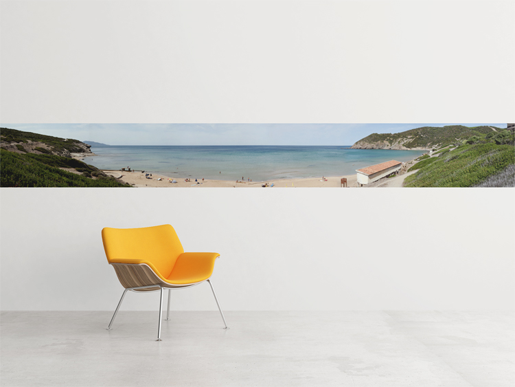 This image, composed from six image files, shows Spiaggia di Funtanazza, the beach of the Colonia Marina di Funtanazza, a holiday retreat erected in the 1950s for the families of the nearby mine-workers of Montevecchio and Ingurtosu.