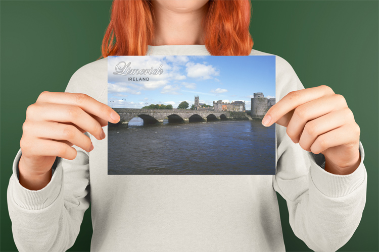 This photo shows the River Shannon which is huge in Limerick, the Thomond Bridge and the edge of King John’s Castle (on the right).