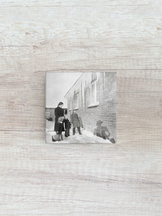 This image from the family archive was shot in January 1945 by my grandfather, Otto Schweim. On a sunny morning, he had used the opportunity to take photos of the kids and Mrs. Irmgard, the nanny, while discovering the icy surroundings of the house.