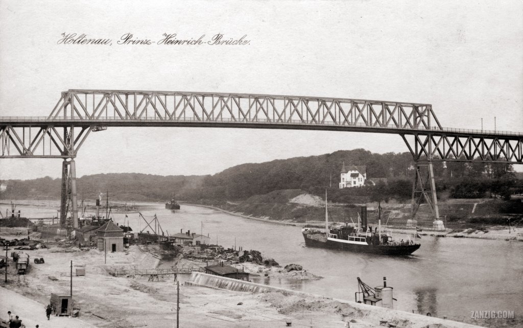 1917 – A historic postcard shows the view of the high bridge crossing the canal near Kiel in Germany. © Mark Zanzig/zanzig.com/Photo: Karl Koch