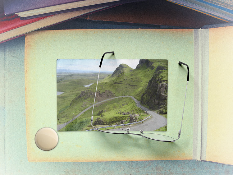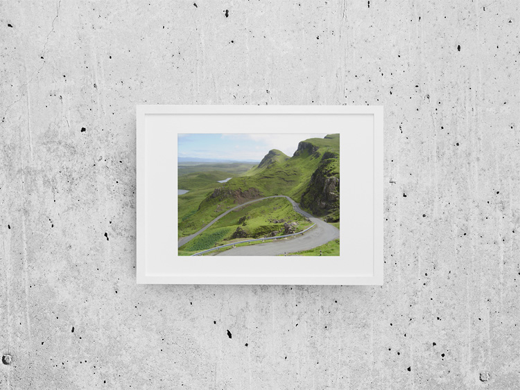 My photo shows the steep and curvy road that leads to the upper car park. I like the gentle hills and saturated green which is ubiquitous on Skye.