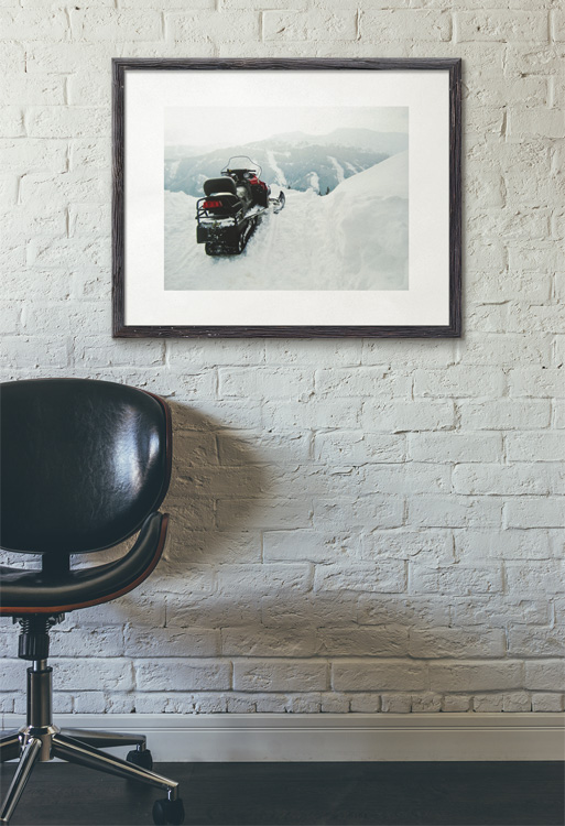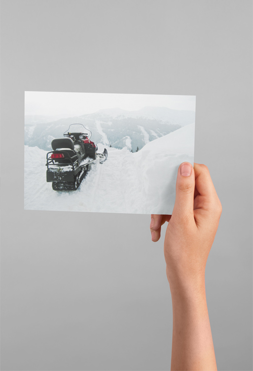 The ski lift – coveniently located right next to the building – was open, much to the enjoyment of the majority of the group. I am not a skier, you know, so I enjoyed a sunbath on the patio. Then someone arrived with a snowmobile and parked it at the edge of the hill – and, having nothing else to do, I took a photo.