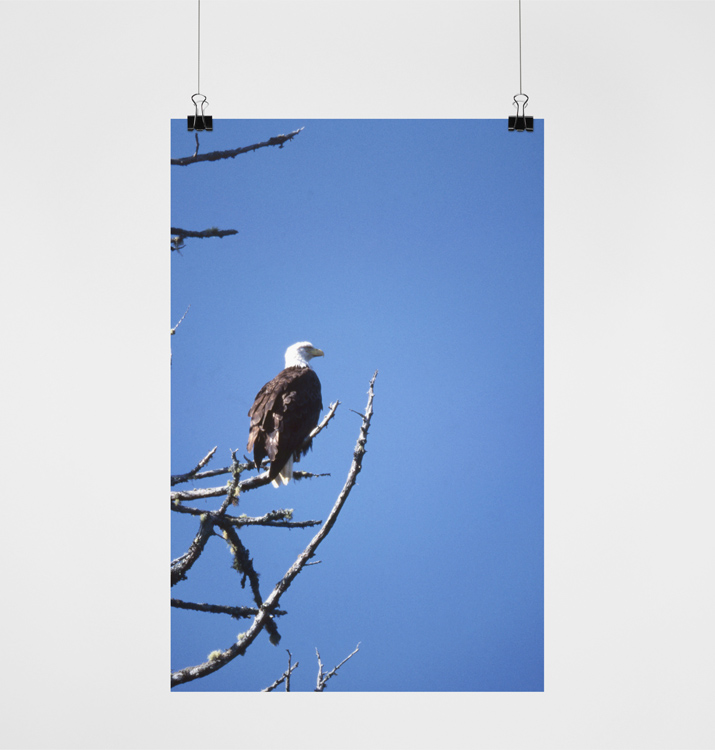 AUGUST 2002 – A Bald Eagle observes the surroundings from a dead tree in Ucluelet, British Columbia. © Mark Zanzig/zanzig.com