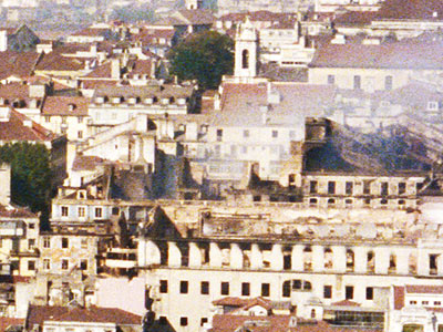 My photo shows the R. da Vitória in the city center. People were stopped by the fire brigades and gaze in shock at a large building (in the R. do Crucifixo) that has burned down almost completely. You could even see the sky through the former windows.