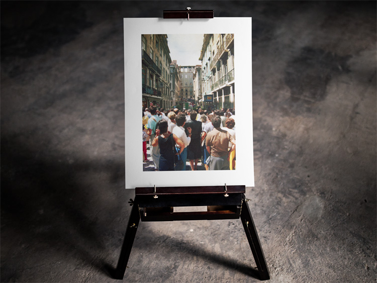 1988 – In the R. da Vitória in Lisbon, Portugal, people watch in shock the work of the Lisbon Fire Department after a building in the R. do Crucifixo has burned down almost completely. © Mark Zanzig/zanzig.com