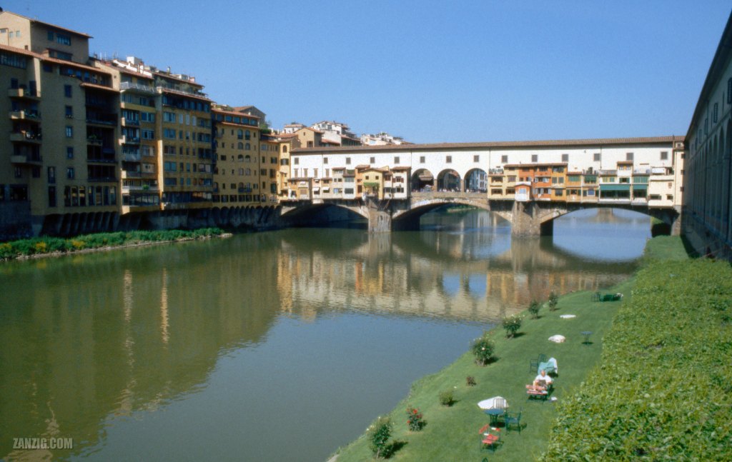 1999 – The historic bridge Ponte Vecchio spanning the Arno River in Florence, Italy. © Mark Zanzig/zanzig.com