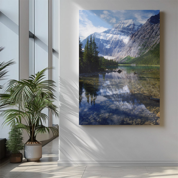 AUGUST 2002 – The majestic Mount Edith Cavell mirrors in the surface of Cavell Lake at the Jasper National Park, Alberta, Canada. © Mark Zanzig/zanzig.com