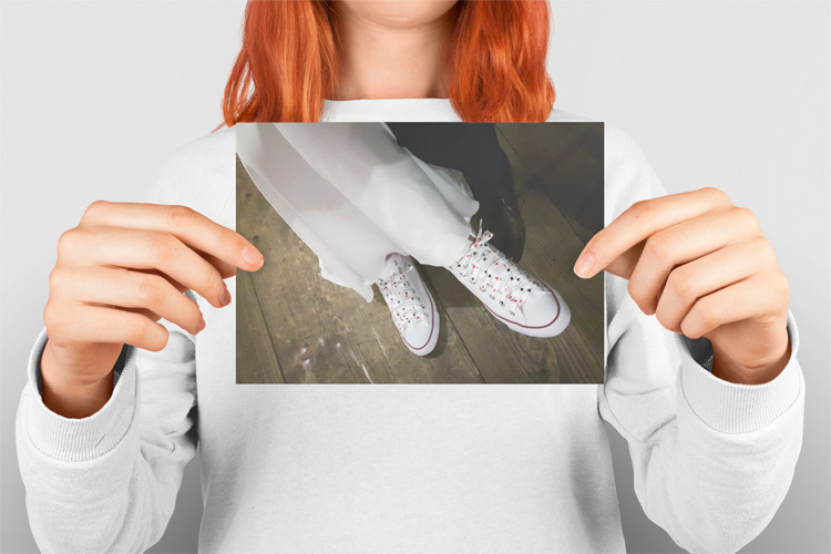 OCTOBER 2023 – Bridal shoes and a white skirt, Bavaria, Germany. © Mark Zanzig/zanzig.com