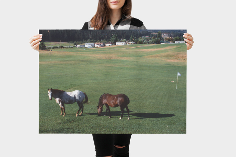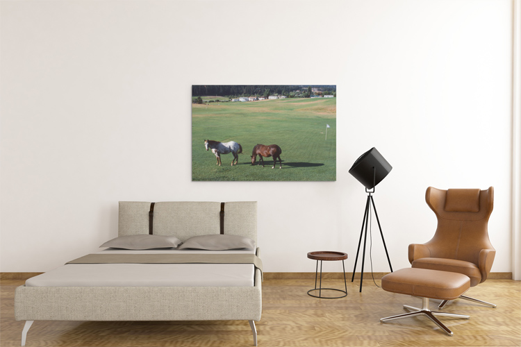 Two horses enjoy their meal on a golf course in British Columbia. I think this is really funny, especially when you consider that the horses have not been photoshopped into the image.