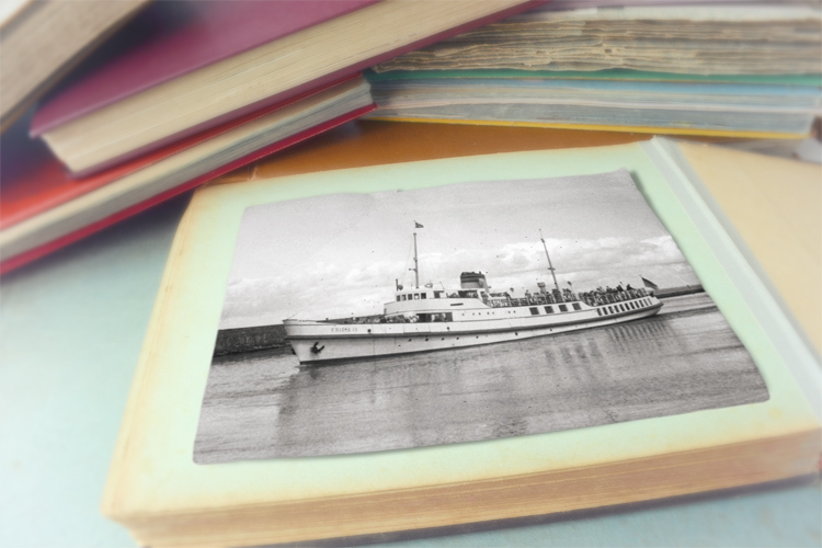 This image from the family archive shows the passenger ferry Frisia IV in the harbour of Norddeich. It was owned and operated by the Reederei Norden-Frisia AG which has a long history of providing scheduled transfer services to the islands of Juist and Norderney. These belong to a group of islands called Eastern Frisian Islands.