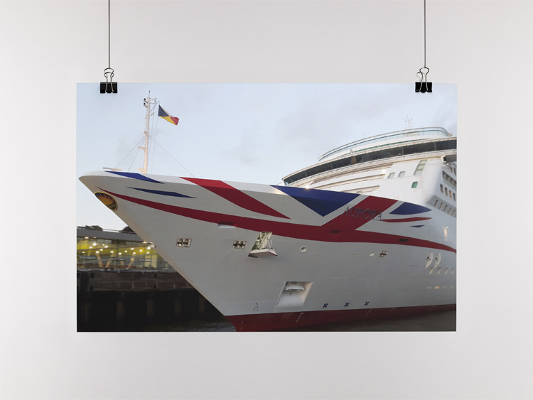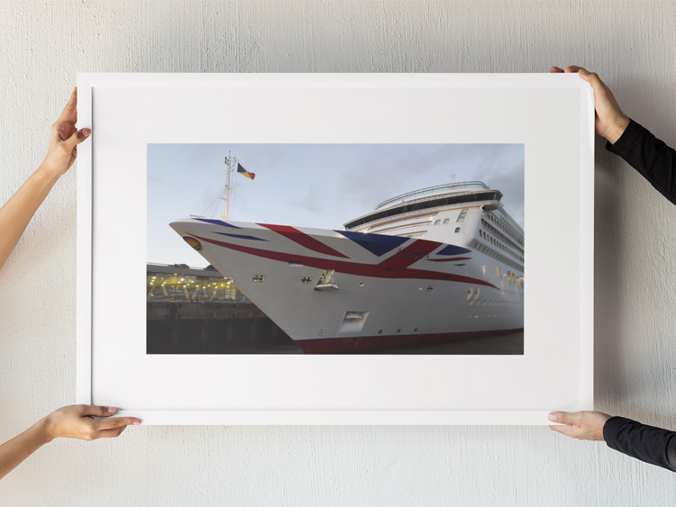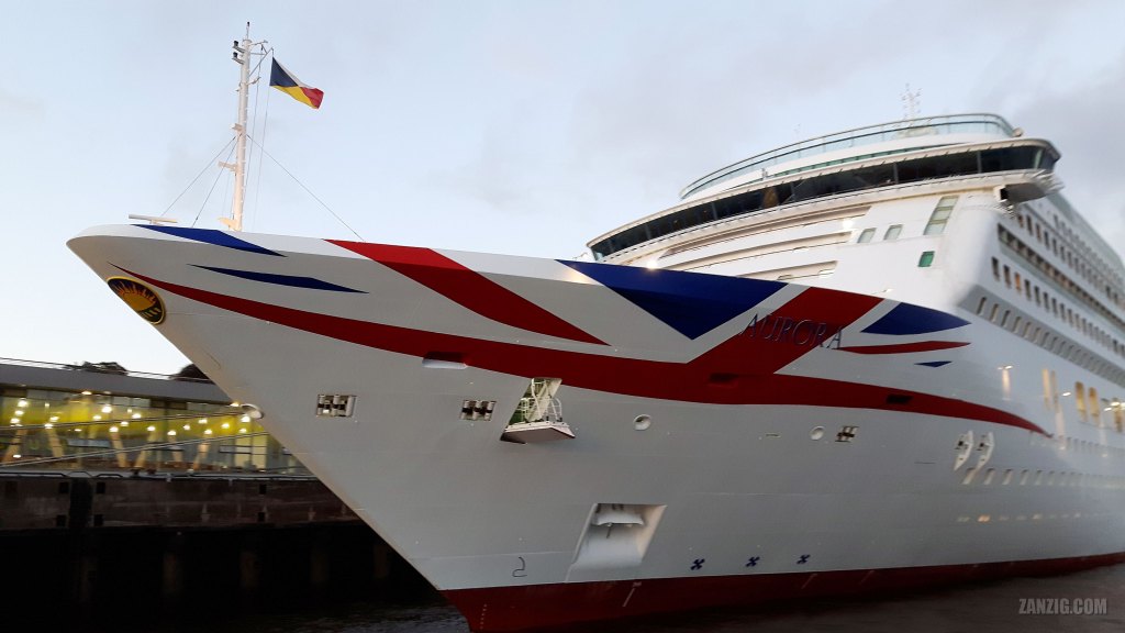 AUGUST 2023 – Side view of the cruise ship Aurora by P&O Cruises at the Dockland in Hamburg, Germany. Photo © Mark Zanzig/zanzig.com