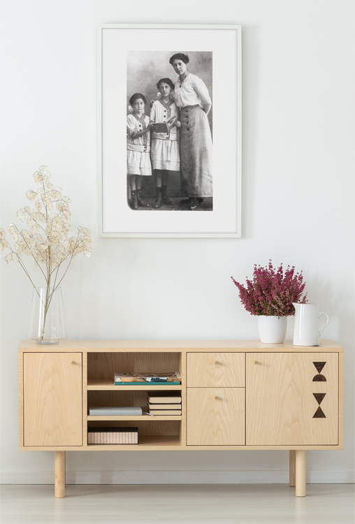 UNDATED – Portrait of Eugenie Gehring (1885-1962) with her daughters Irmgard (left) and Edith in a photo studio in Eutin or Oldenburg i. Holstein in Germany. © Mark Zanzig/zanzig.com