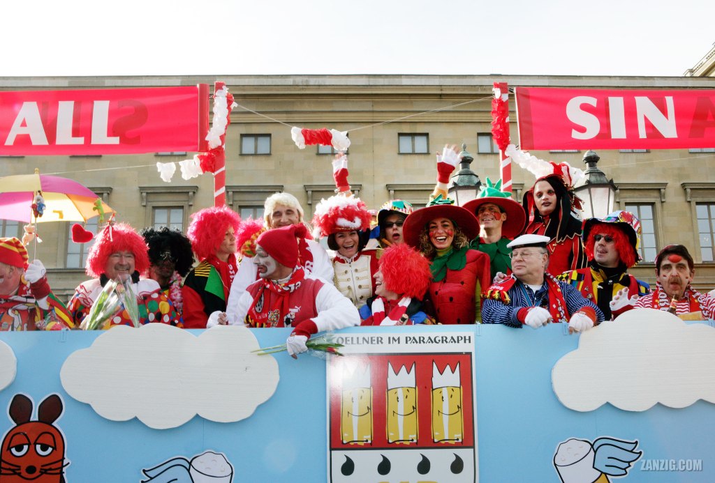FEBRUARY 2007 – The party team of the Coellner im Paragraph has a good time on their bespoke wagon during the Mardi Gras parade in Munich, Germany. Photo © by Mark Zanzig/zanzig.com