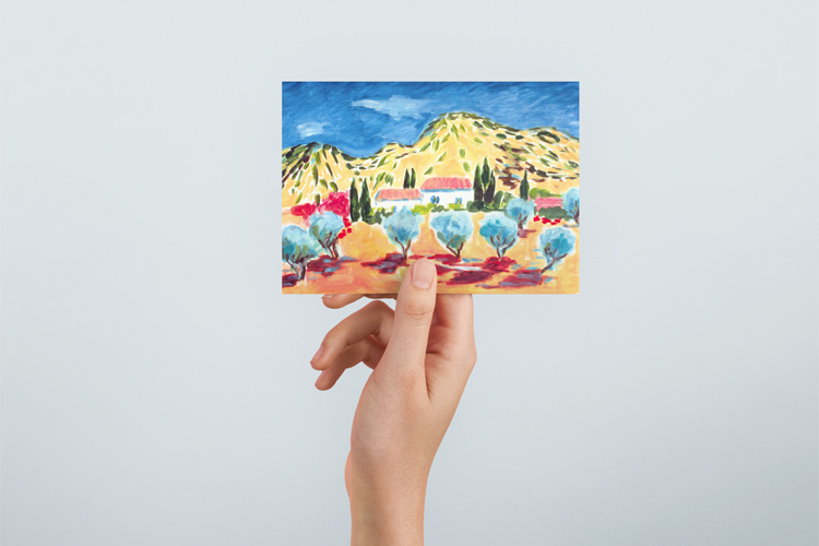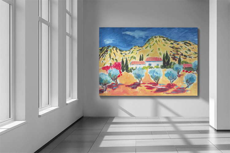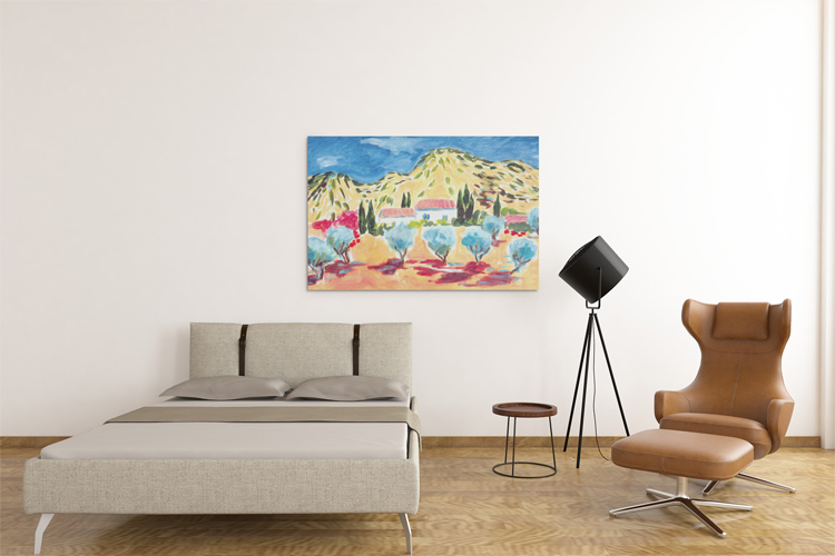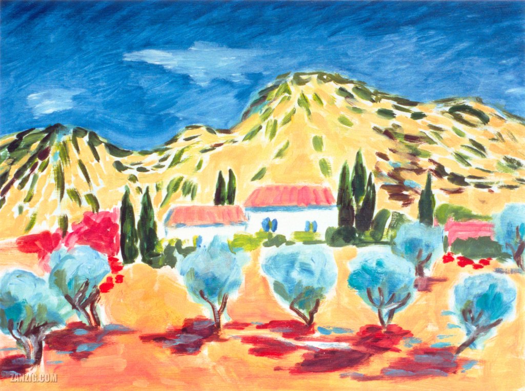 UNDATED – A colorful painting by Inga Zanzig shows a landscape in southern Europe. © Inga Zanzig/zanzig.com