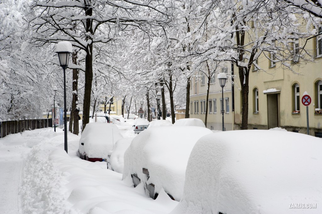 MARCH 2006 – After a night of heavy snowfall in Munich, Germany, cars parked in the Frundsbergstraße in Munich are completely covered by snow, a rare sight for early March. Photo © by Mark Zanzig/zanzig.com