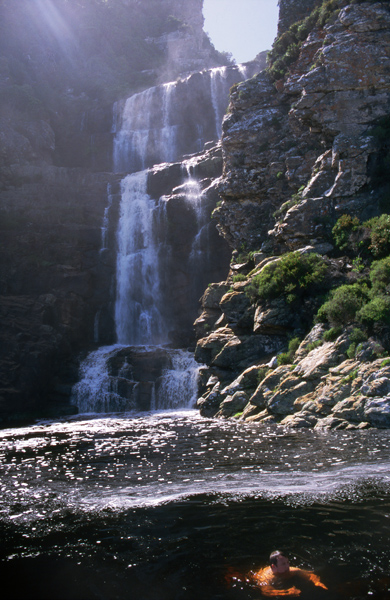 The guidebook said “just follow the yellow painted footprints” – which was easier said than done: one time we lost the trail and could be seen scanning the area for the footprints. But, hey, it was fun anyway. So, it’s a good idea to plan about 45 to 60 minutes (one way) for the Waterfall Hike. Once you’ve reached the waterfall, you may not proceed further west without the Otter Trail permit.
