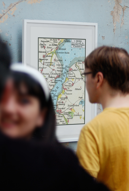 This map was part of a postcard dated 1905. I really like the soft colors, and the fact that the footprint of Kiel looked vastly different back then. The area with buildings is much smaller than today, and on the western side it seems as if the city ends at Belvedere (towards north.) Communities like Altenholz Stift (where I grew up), Friedrichsort or Schilksee were far out on the countryside. Even the quarter called Wik (here: Wick) look detached from the main city.