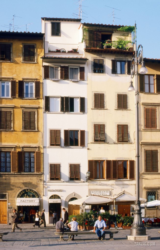 1999 – Tall, narrow houses at the Piazza di Santa Croce in Florence, Italy. © Mark Zanzig/zanzig.com