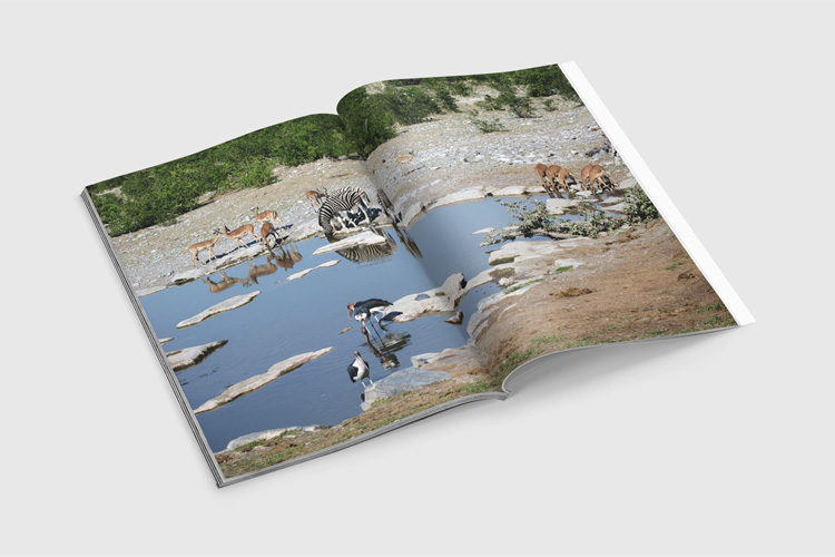 In 2006 we headed for the second time to the south of Africa, this time for two weeks in Namibia. One of the major attractions of the country is the Etosha National Park. Unlike other national parks it is not too busy with tourists, and we had been able to experience unspoilt nature without major distractions. We spent one night at the Halali camp inside the park, and the Moringa waterhole sits right next to the camp. It can be observed around the clock from the camp.