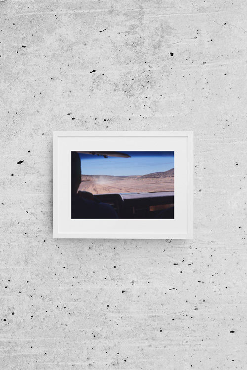 This backseat view shows a second 4×4 speeding through the sandy and dusty road in front of us. If you look closely you will spot that looong hair on the slide that was scanned. Ha! That was a crack in the front window of the vehicle.
