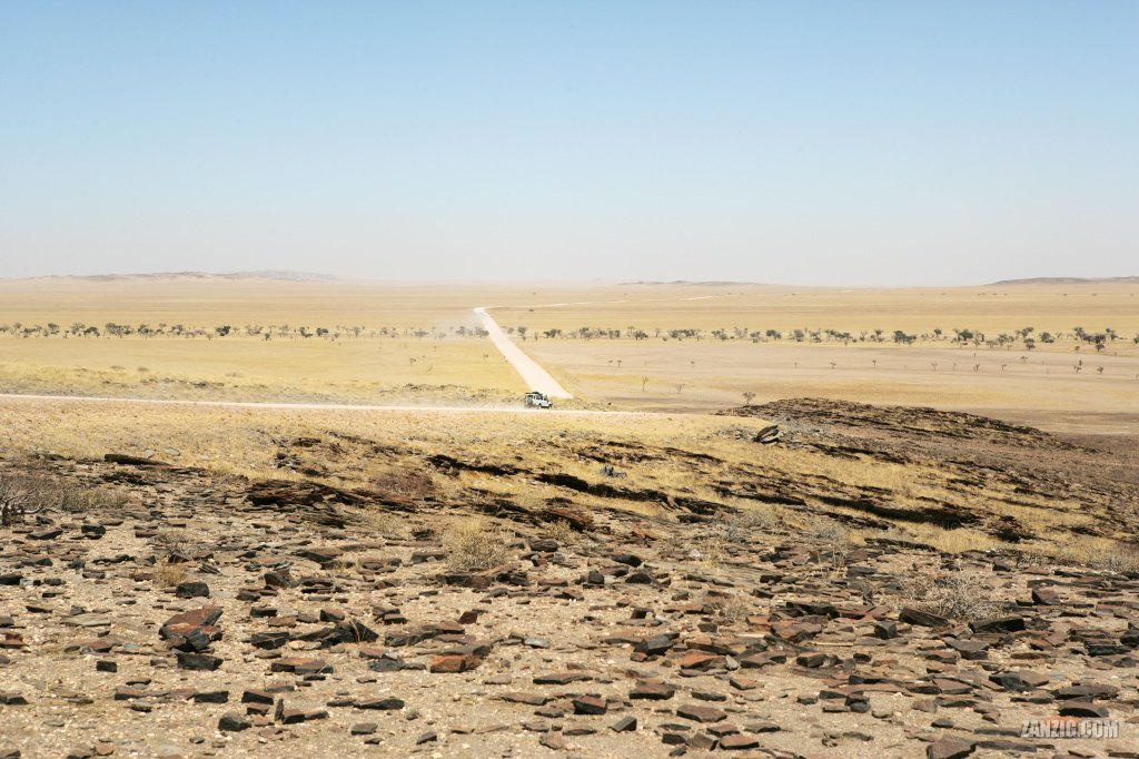 DECEMBER 2006 – A 4×4 vehicle speeds along the C14 in Nambia towards Walvisbay. Photo © Mark Zanzig/zanzig.com