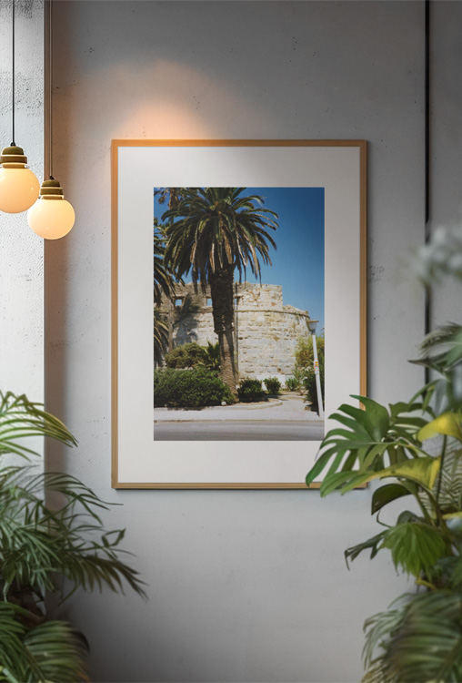My photo shows the south-eastern corner of the fortress. The spot has not changed significantly over the past three decades. The plam trees have grown, the street lamp has been replaced by a taller one, and there are now bespoke bicycle lanes where just a plain street was before. But that’s it.