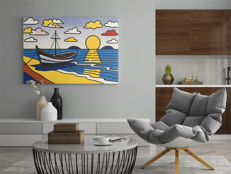 Here is yet another result from this excercise. Now, I asked ChatGPT to create a painting from the beautiful sunset image it had already created for me but now in the style of pop-art icon Roy Lichtenstein (1923-1997). Here’s the prompt: