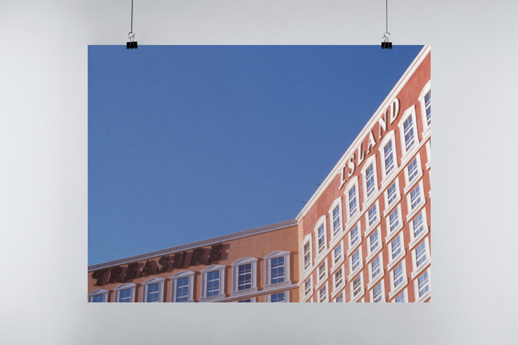 This photo shows the south-west front of the Treasure Island hotel. I like the architecture with its nicely decorated windows, the straight lines, the long shadows that add contrast, and the reduced color set.