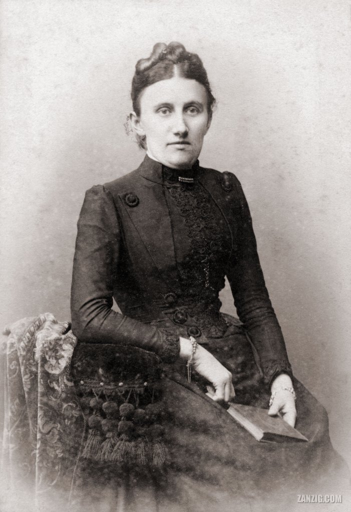 The clothing, hairstyle and pose confirm this assumption. The lady wears a dress that is very typical late 19th century. Several details: