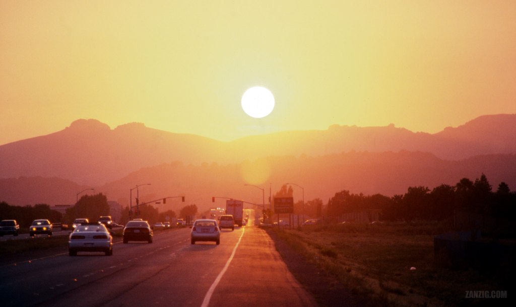 SEPTEMBER 2003 – Sunset over Highway 12 near Fairfield, California. Photo © Mark Zanzig/zanzig.com