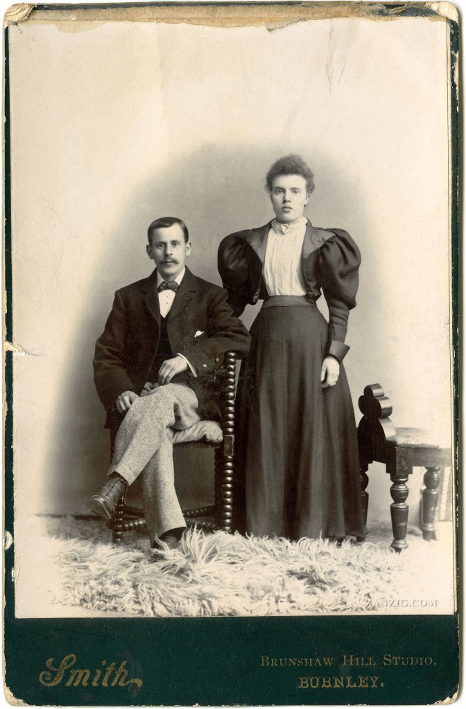 C. 1895 – Portrait of an unknown couple, taken in Burnley, United Kingdom. © by Mark Zanzig/zanzig.com/Photo: Smith/Brunshaw Hill Studio