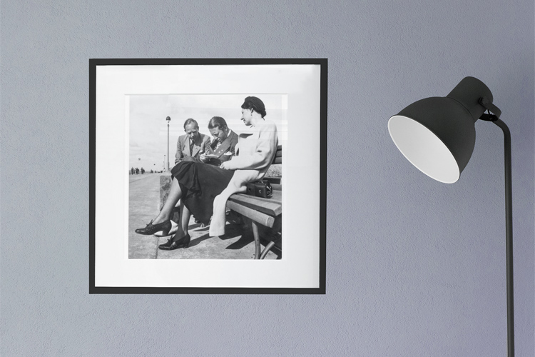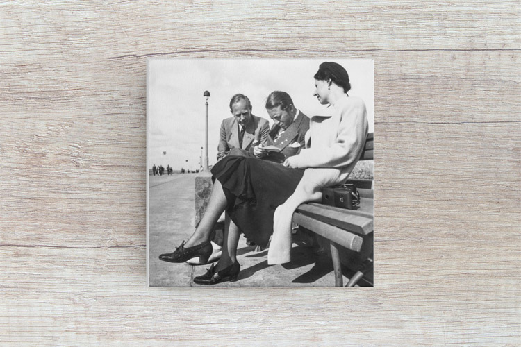 1943 – Otto Schweim (left), Arthur Wilke (center), and Edith Schweim sit at the promenade of St. Peter Ording in Germany, reading a letter with news from their hometown. Their faces show concern. © Mark Zanzig/zanzig.com