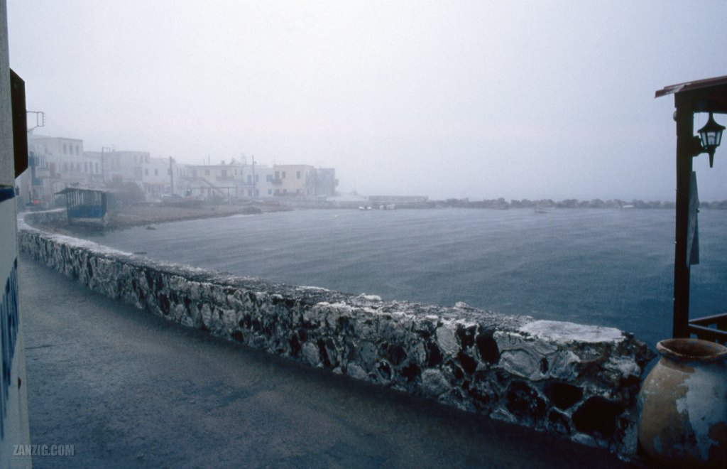 SEPTEMBER 1994 – Heavy rain goes down over Mandraki on Nisiros island in Greece. © Mark Zanzig/zanzig.com