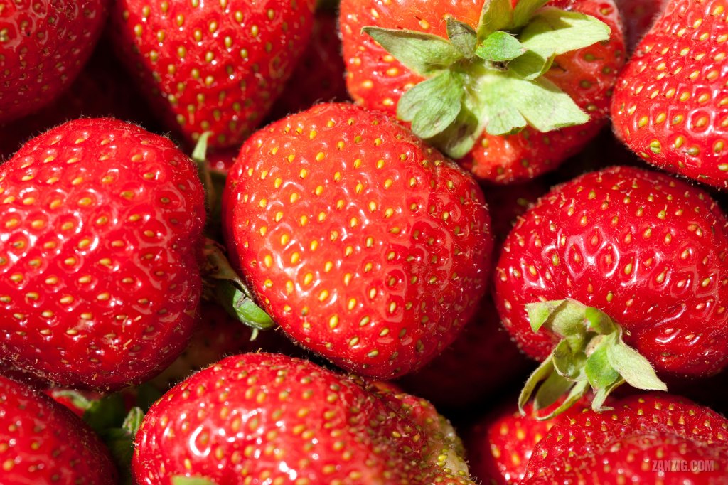 AUGUST 2011 – Close-up of self-harvested strawberries glowing in the sunlight in Taufkirchen, Bavaria, Germany. © Mark Zanzig/zanzig.com