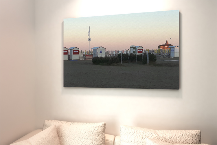 One evening we returned from dinner, and I captured this view of the Spiaggia di Levante with the Chiesa della Madonna dell’Angelo illuminated by the sun that would set 20 minutes later. The umrellas had all been closed, the wind had died, and the atmosphere was very relaxing. Even a seagull flew by, searching the ground for some leftover food from the tourists.