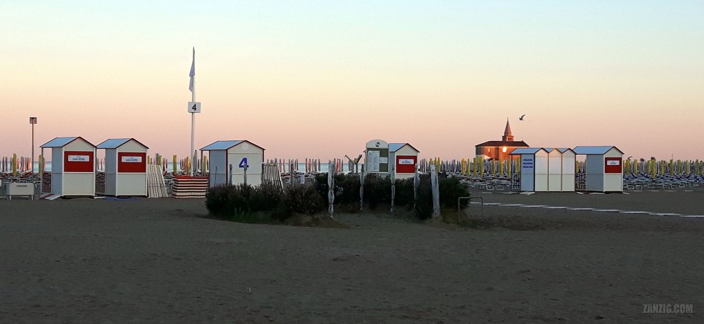 JUNE 2017 – View across the Spiaggia di Levante of Caorle in Italy with the Chiesa della Madonna dell’Angelo in the back. Photo © Mark Zanzig/zanzig.com