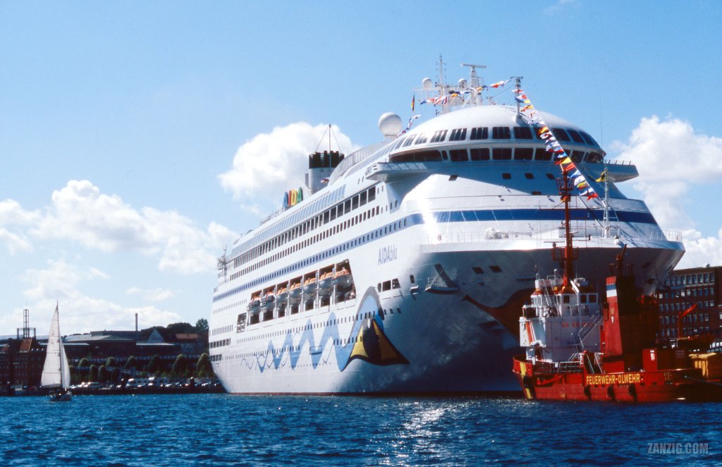 AUGUST 2004 – The cruise ship AIDAblu at the Schwedenkai in the port of Kiel, Germany. © Mark Zanzig/zanzig.com