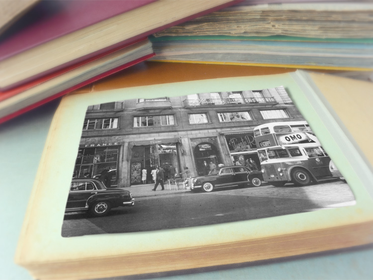- An Air France office on the left, possibly by a travel agent under exclusive license to the airline