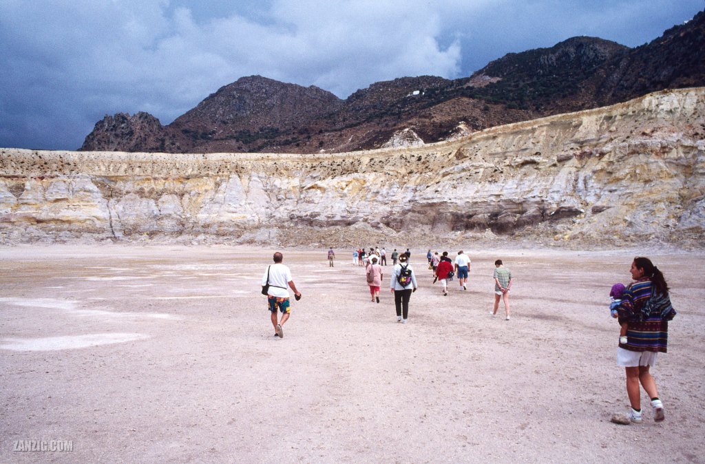 SEPTEMBER 1994 – A group of tourists walks on the ground of Stefanos Crater on the island of Nisiros in Greece. © Mark Zanzig/zanzig.com