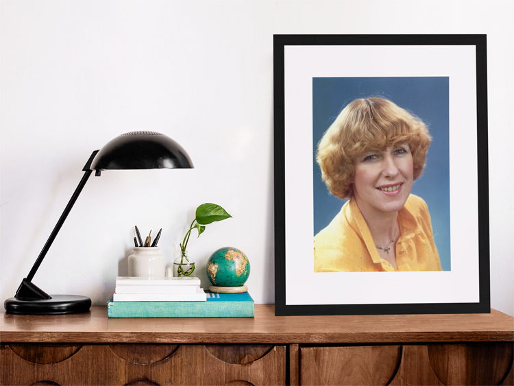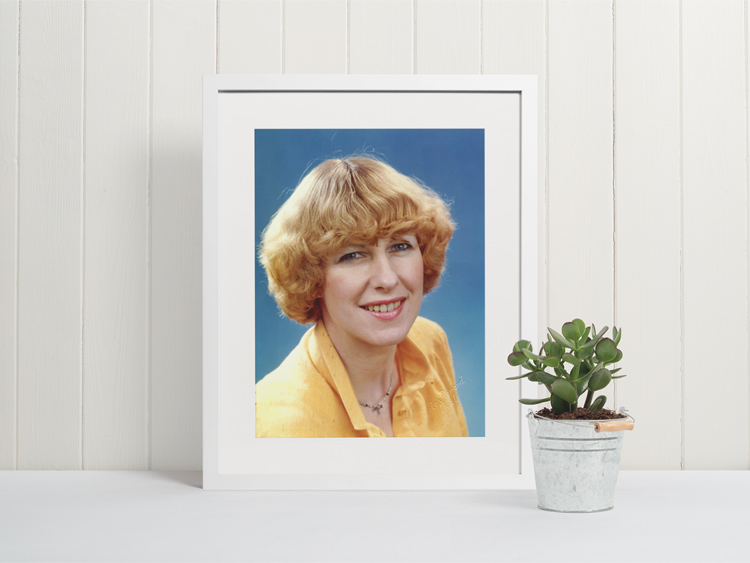 1979 – Portrait of Inga Schweim (1942-2004) at a photo studio in Kiel, Germany. © Mark Zanzig/zanzig.com/Photo: Renard, Kiel