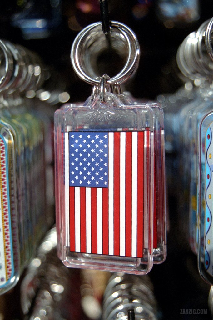 SEPTEMBER 2003 – The national flag of the United States of America as a keychain in a souvenir shop in San Francisco, California. © Mark Zanzig/zanzig.com