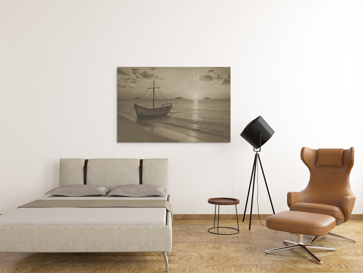 MAY 2025 – AI generated photo realistic image showing a sunset at a beach with an old boat as a cabinet photo from about 1890. © Mark Zanzig/zanzig.com/Photo: ChatGPT