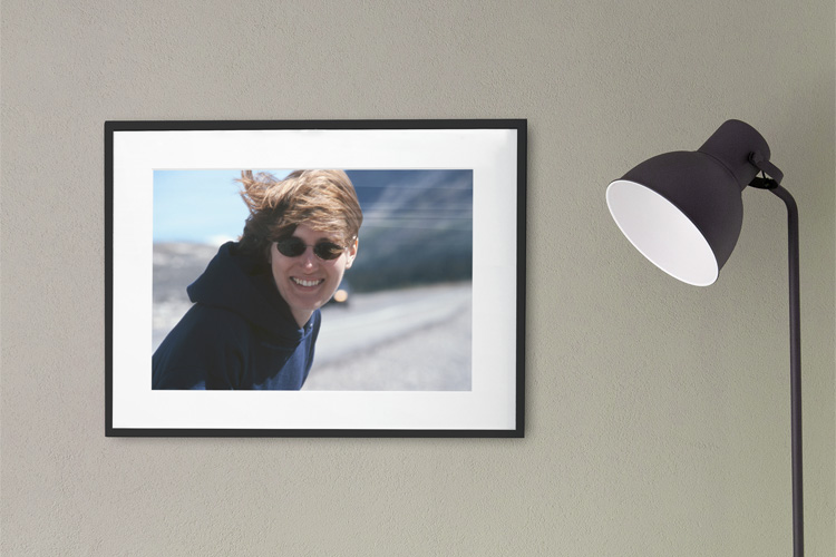 I like this image for so many tiny details: the strong wind tosses her auburn hair around, her awesome smile that still makes me melt away, the light of the car that passes in the back, the combination of blue sky (on the left) and green mountain scrub and trees (on the right).