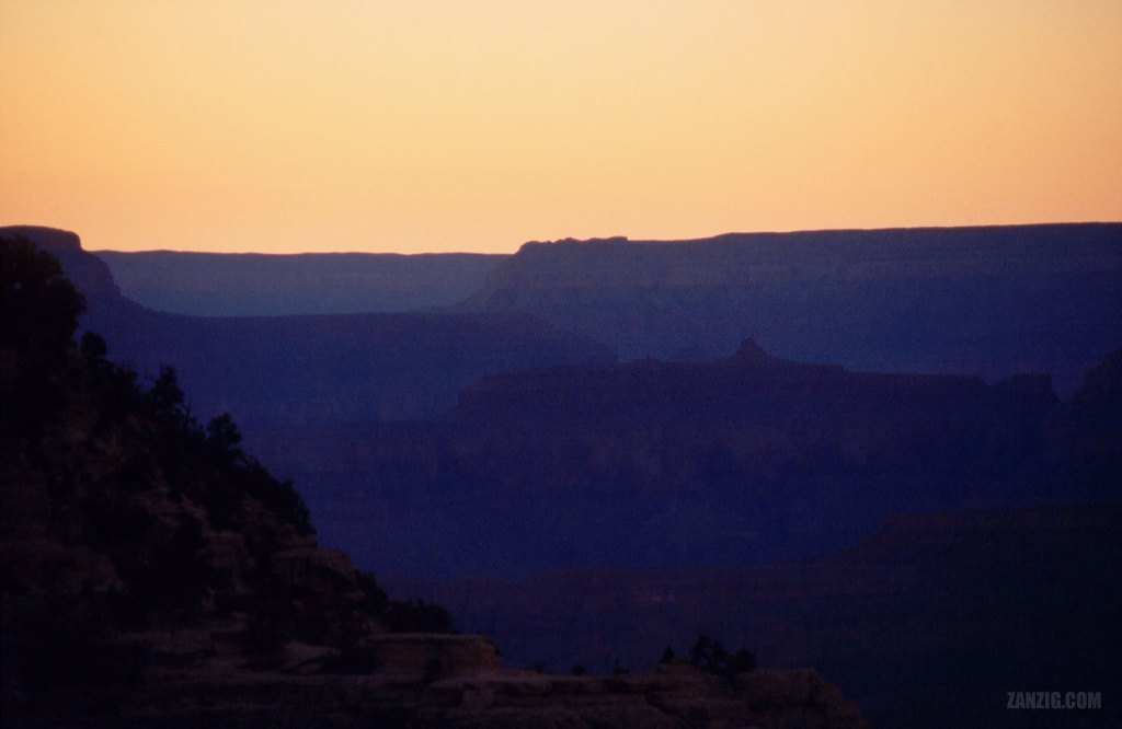 SEPTEMBER 2003 – View along the Grand Canyon in Arizona after sunset, seen from the Yavapai viewpoint on the South Rim. Photo © by Mark Zanzig/zanzig.com