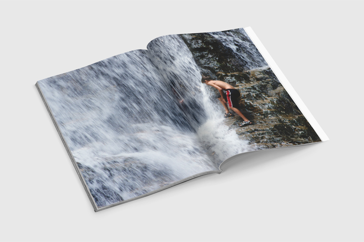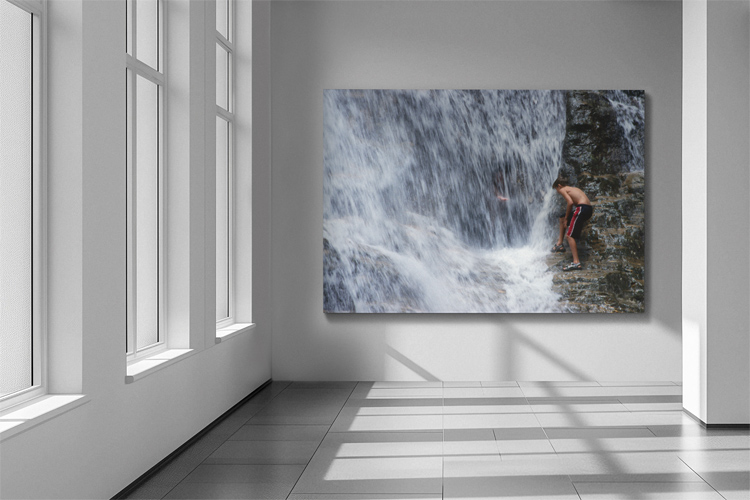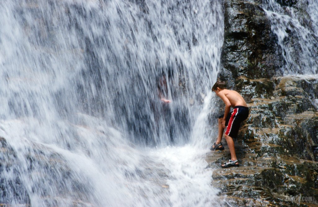 My photo shows a boy who was waiting for the right moment for jumping through the waterfalls to join his mother in a cave behind the waterfalls. The water was pretty cold and the falling water had a lot of power, so I can understand that he was waiting. His mother, however, had already made the step and now reached her hand to him. (In the end, the boy made the brave step into the cave.)