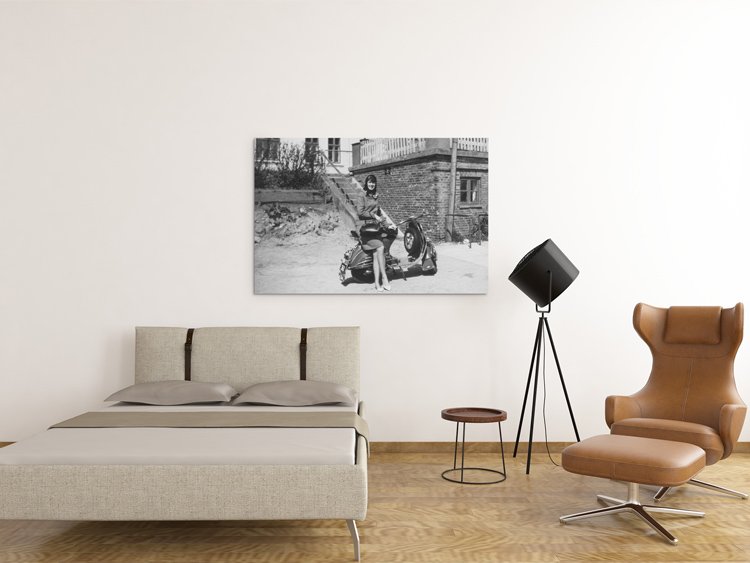 MAY 1965 – Inga Schweim (23) poses on a Vespa scooter in Kollund in Denmark. Copyright © Mark Zanzig/zanzig.com/Photo: Klaus Zanzig