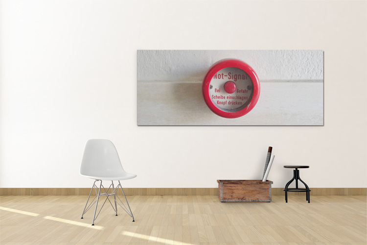 AUGUST 2025 – A bright red emergency button in a building in Grömitz, Germany. Photo © Mark Zanzig/zanzig.com