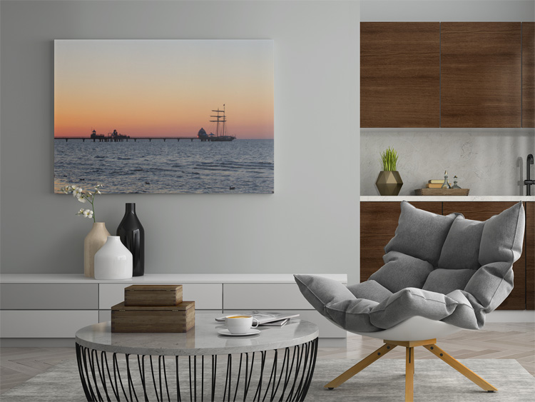 In my image, the rising sun delicately illuminated the impressive sea pier. As a bonus, the tall ship J.R. Tolkien from The Netherlands was tied at the end of the pier, giving the beautiful silhouette an even more maritime flavour. The ship has its own Wikipedia entry (in German) as well as an official homepage.