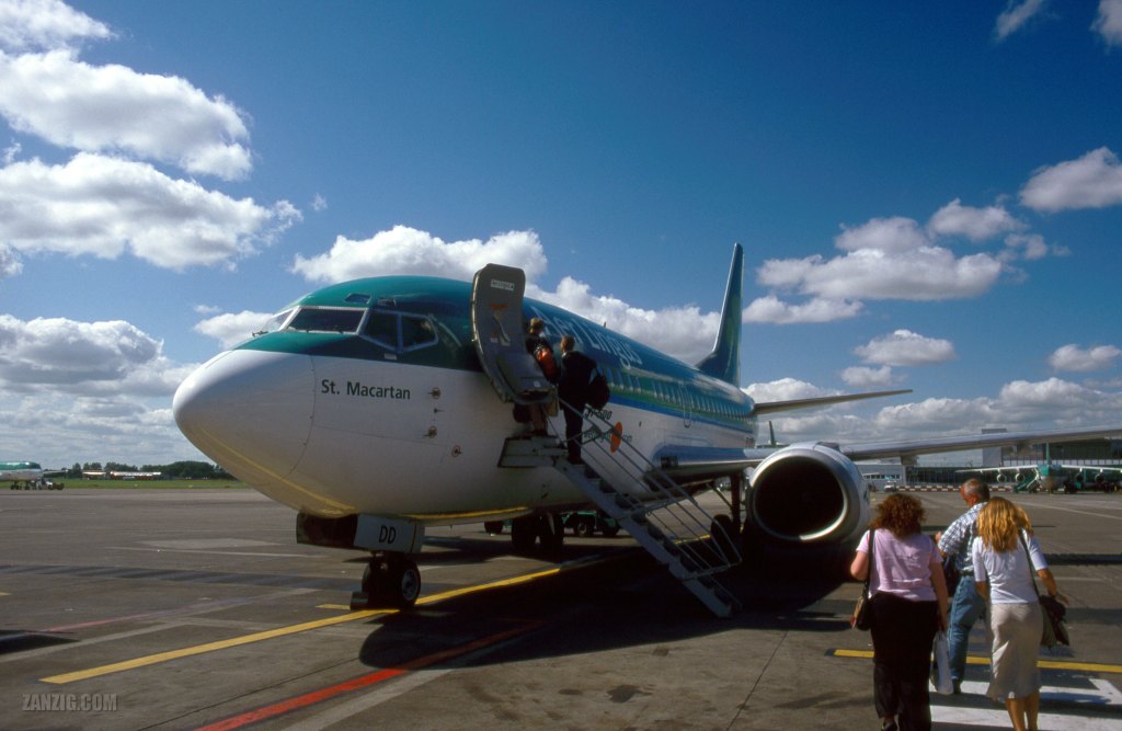 AUGUST 2003 – Passengers board EI-CDD (St. Macartan), a Boeing 737-500 of Aer Lingus, at the airport of Dublin in Ireland. © Mark Zanzig/zanzig.com
