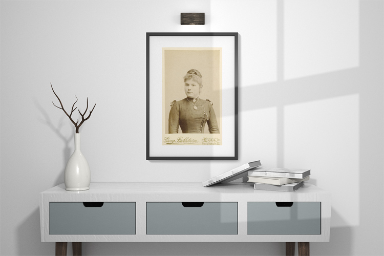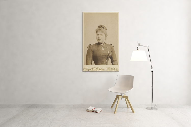 Here’s another Carte de Visite – the common photography format of the time – shot by Mr. Billström. It shows a young lady in his studio in Holstenstraße 22 in Kiel. The studio location suggests a production date between 1890 and 1897, because this was the address of his studio from 1890 to 1897. After that period he moved a bit further down the street to Vorstadt 9 which later became Holstenstraße 43 (without actually moving.)